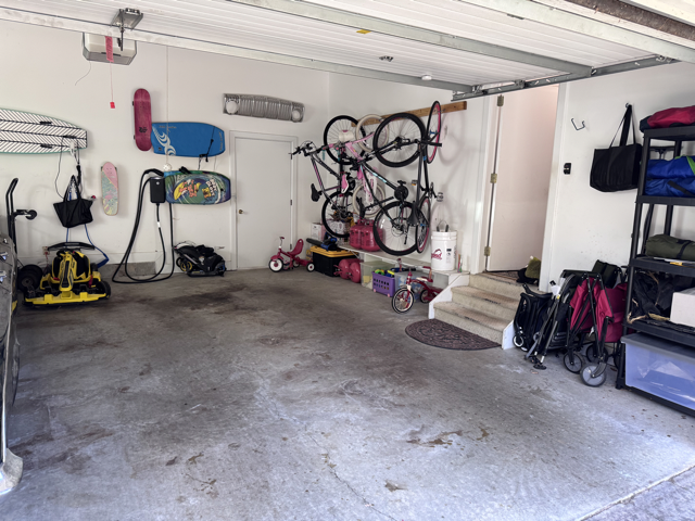 Blocked Access: Essential items like shovels, potting soil, and ladders were piled in corners or leaning precariously against the wall. The bikes were hanging up, but getting to them required navigating around strollers, wagons, and bins. This also made accessing the toddler’s bikes difficult.